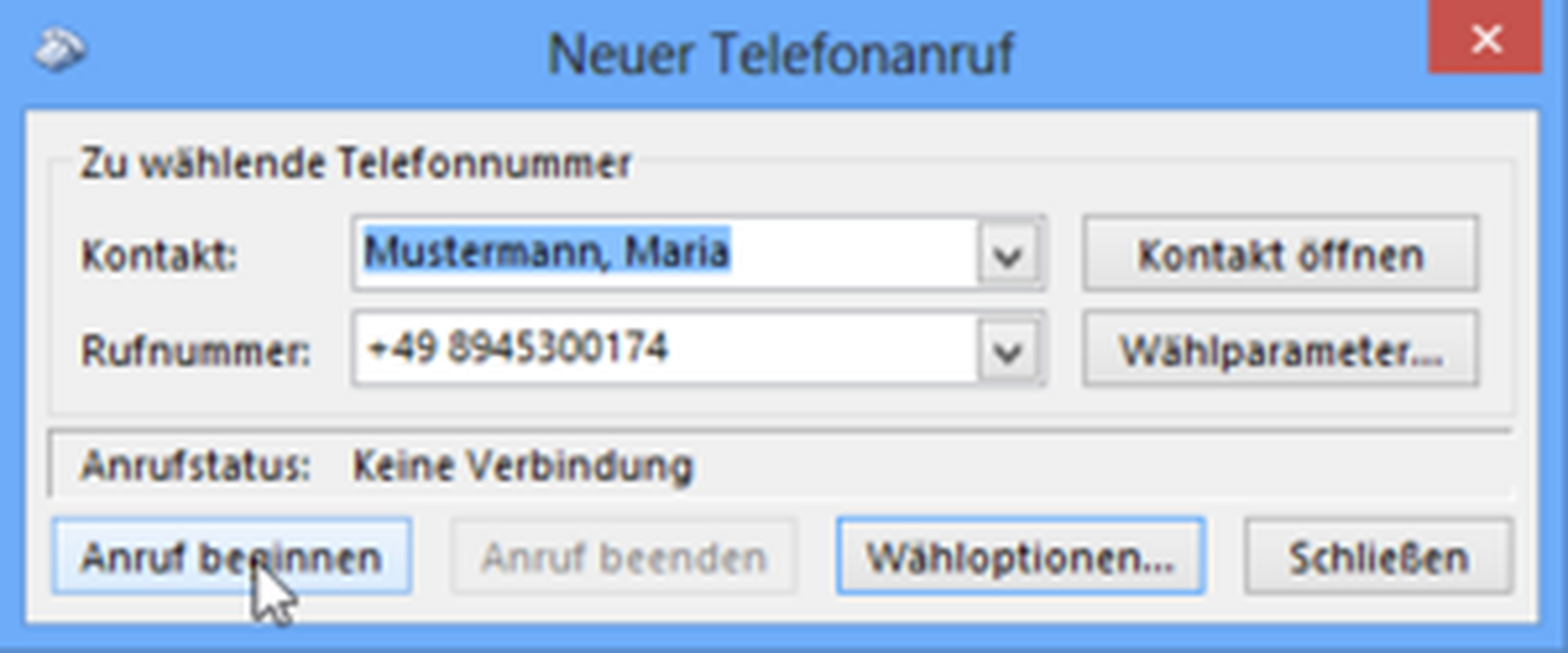 The contact can be opened by clicking on Open contact. All details from Outlook will be shown and can be read before taking the call.