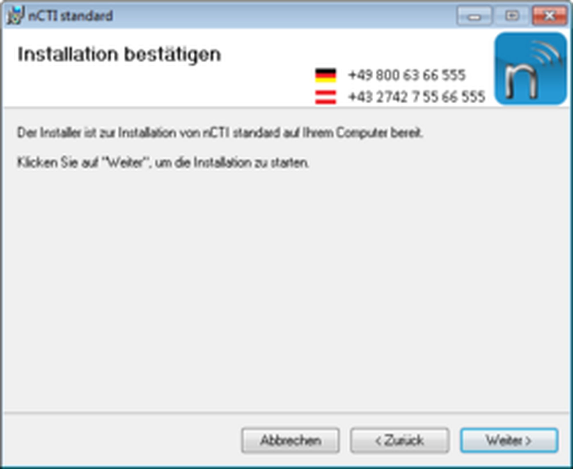 The NCTI standard client is available in two versions. The basic version is not covered with CRM integration. Dependent on which version you use, you're able to download the respective setup for the NCTI standard or NCTI standard CRM at the downloads page. Please start the setup and follow the instructions by the installation wizard.