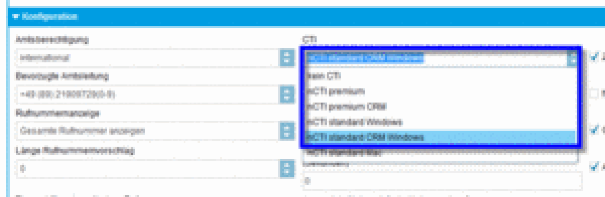 -Visit TARGETS and enter your extension number into the search box. Open the administration settings by double-clicking on the according entry. Check your CTI settings within "Configuration". If there's none or a incorrect CTI client defined, choose your client with or without CRM plugin.