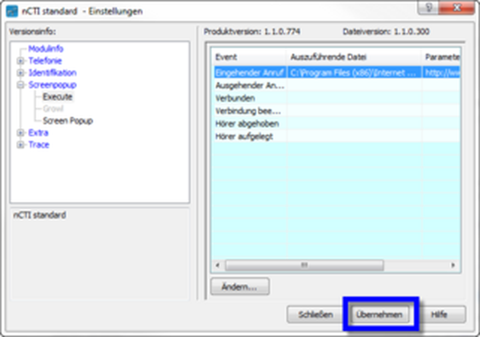 ⇒Your settings will be applied and you are ready to use the NCTI standard / CRM client.