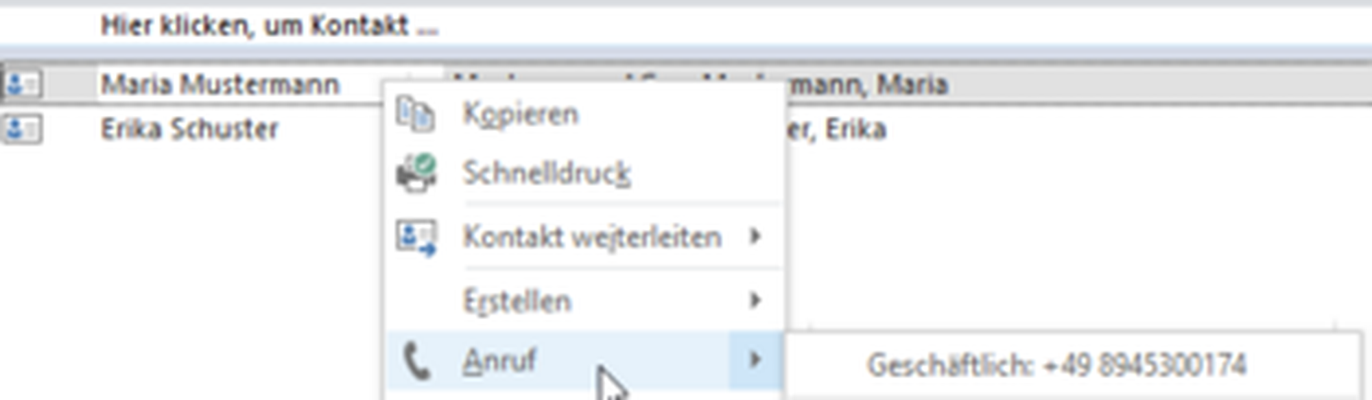 -Right-click on the name, e.g. Jane Doe, and click on "Call".
