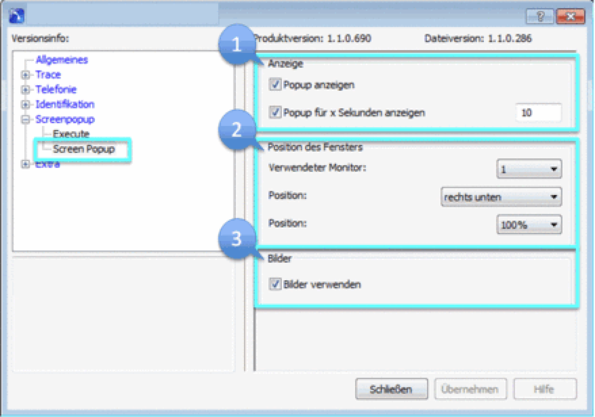 -Choose the Screen pop-up item in the settings menu. Go on Execute by clicking on the + symbol.