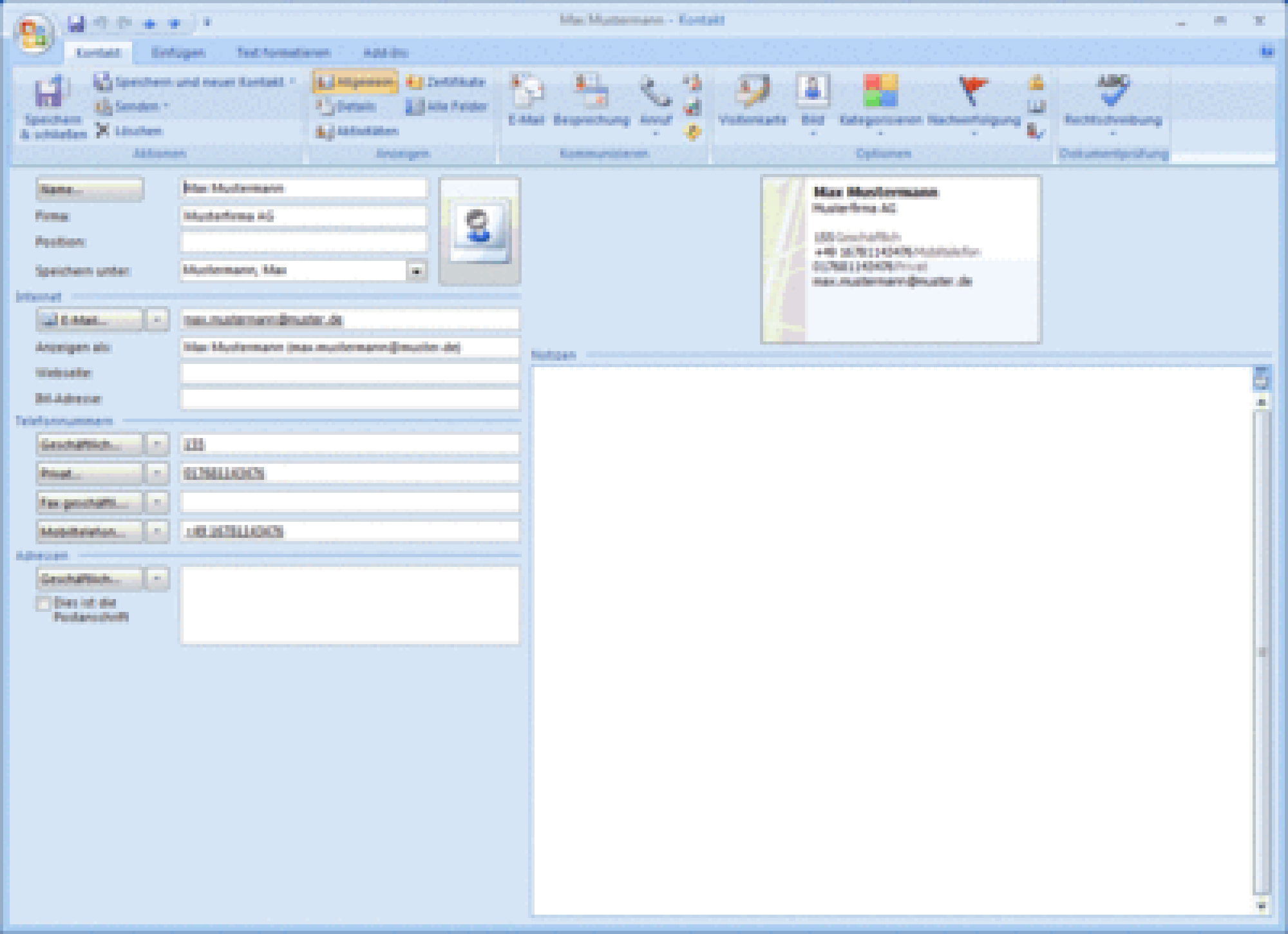 If you have already filed a contact in Outlook, the contact will be shown as a pop-up with all known details.