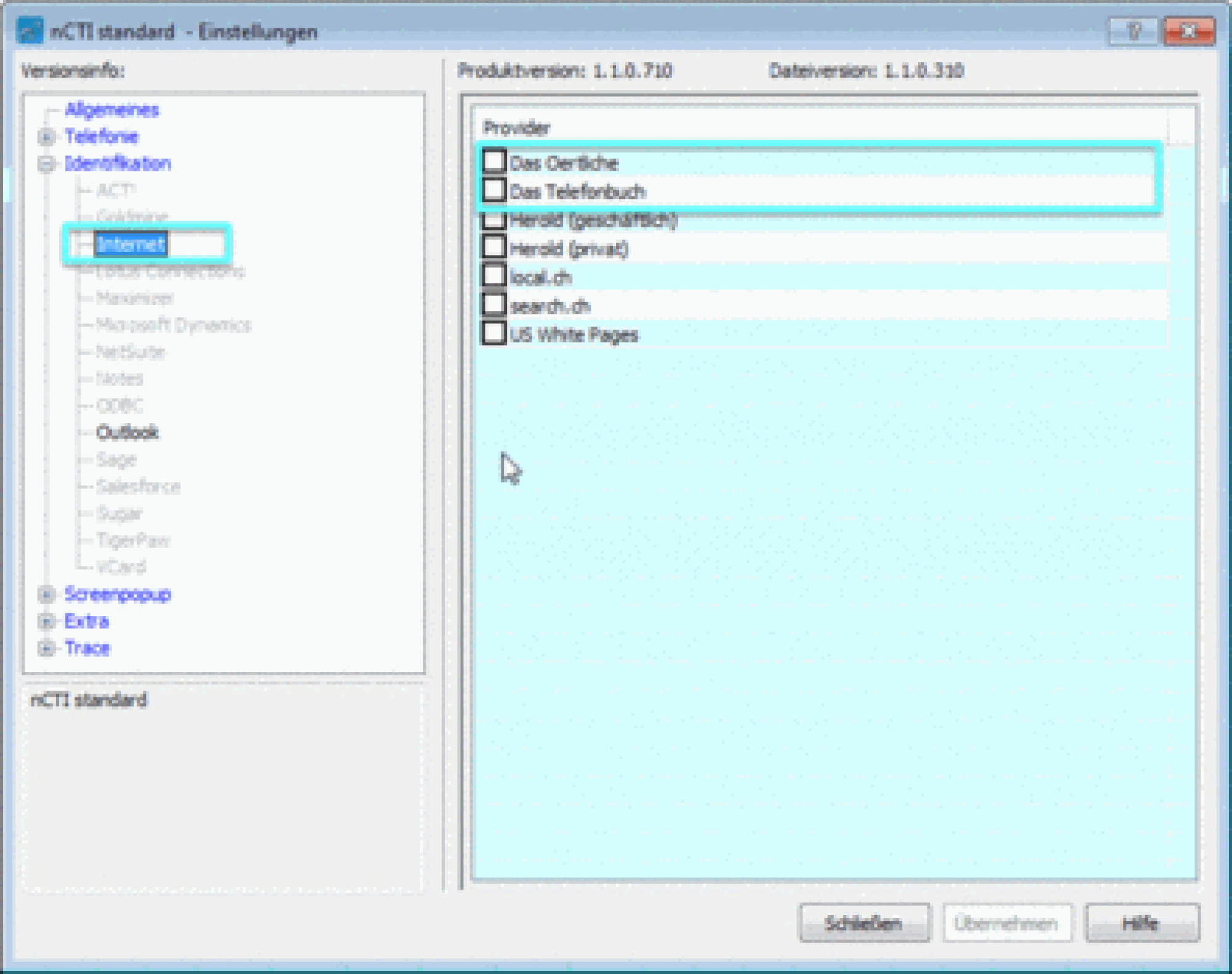 - Click on Identification. Choose Internet. You can now check online directories available.