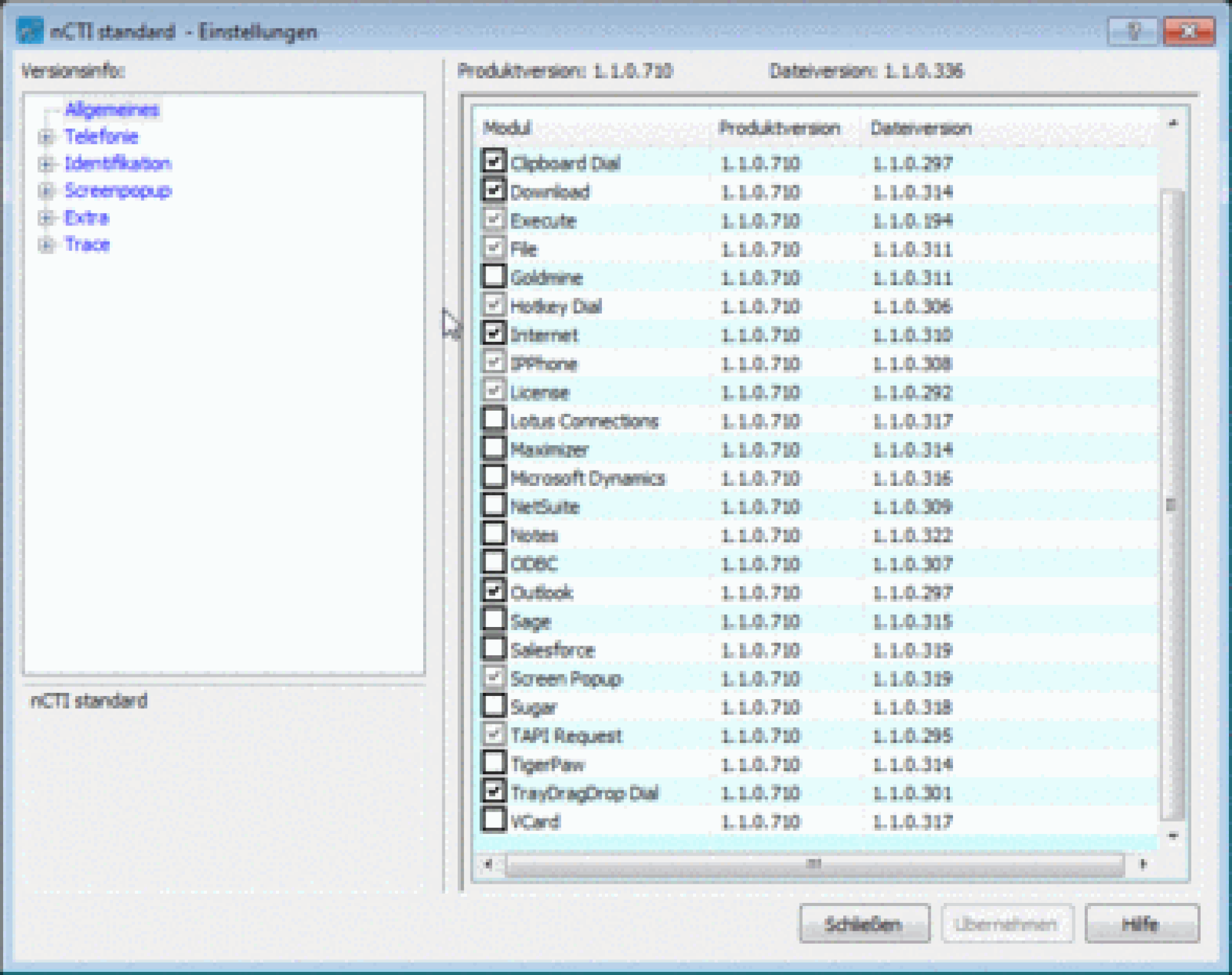 The NCTI standard / CRM client allows integration of various CRM tools.